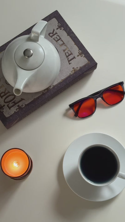 Blootstelling aan blauw licht in de avond verstoort de aanmaak van melatonine, het hormoon dat je helpt ontspannen en in slaap vallen. Maar melatonine doet veel meer. Het is een van de krachtigste antioxidanten in je lichaam, ondersteunt je huid, ogen, haar en nagels,en beschermt je energiefabriekjes: de mitochondria. Meer melatonine betekent meer energie. Onze brillen helpen je dus niet alleen beter slapen, maar ook beter herstellen en stralen.