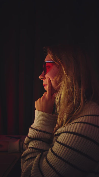 Gele lenzen draag je overdag (bijvoorbeeld achter je scherm of onder kunstlicht) om vermoeidheid en overprikkeling te verminderen. Rode lenzen zijn er juist voor de avond, wanneer het donker is buiten of ongeveer twee uur voor het slapengaan. Ze blokkeren alle storende lichtfrequenties die je biologische klok kunnen verstoren om jouw in dromenland te brengen.